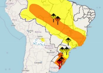 INMET emite alerta laranja de chuvas intensas e ventos fortes para 133 cidades do Leste de Minas. População deve seguir...