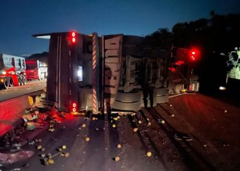 Read moreDetailsCarreta carregada de frutas tomba na Fernão Dias, gera lentidão de mais de 10km na Grande BH. Motorista é encaminhado...